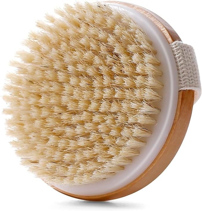 اي سي في في فرشاة جسم جافة ورطبة، فرشاة استحمام لتنظيف وتقشير التصريف اللمفاوي، شعيرات من الخشب الطبيعي، مقاس 10.5 × 10.5 سم دائرية