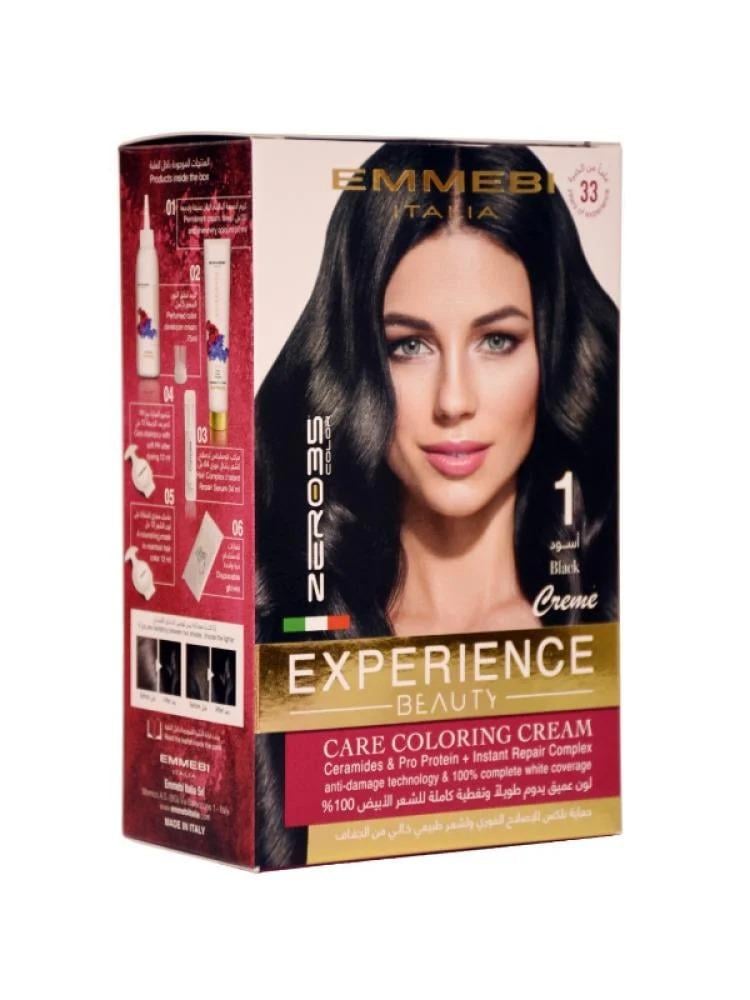 بيوتي اكسبيرينس طقم صبغة شعر ايطالية دائمة من زيرو 35 - درجة 1, لون اسود