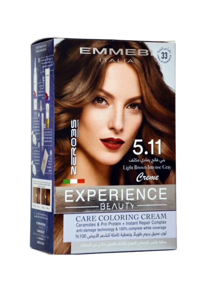 بيوتي اكسبيرينس طقم صبغة شعر ايطالية دائمة من زيرو 35 - درجة 5.11, بني فاتح رمادي مكثف