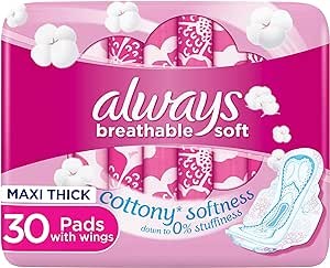 فوط صحية ناعمة للنساء جيدة التهوية ماكسي سميكة من الويز، فوط صحية كبيرة باجنحة، 30 فوطة صحية